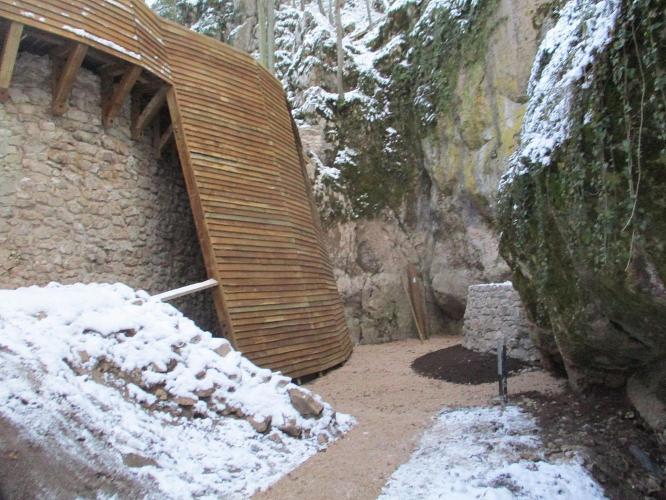 Ugyanitt egy tölgyfa gyilokjárón bejárhatóvá vált a 8-12 méter magasan fennmaradt, hatalmas sziklatömbök közé beékelt keleti és északi várfal falkoronája is.
