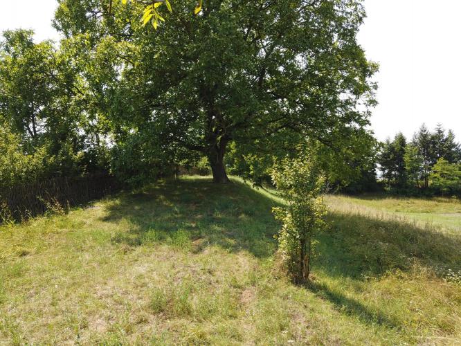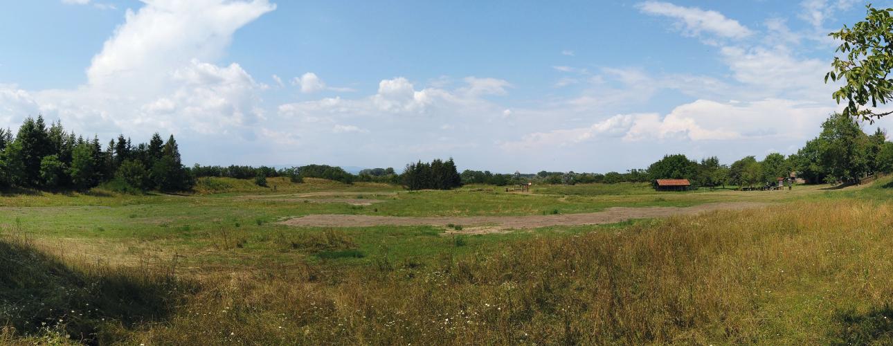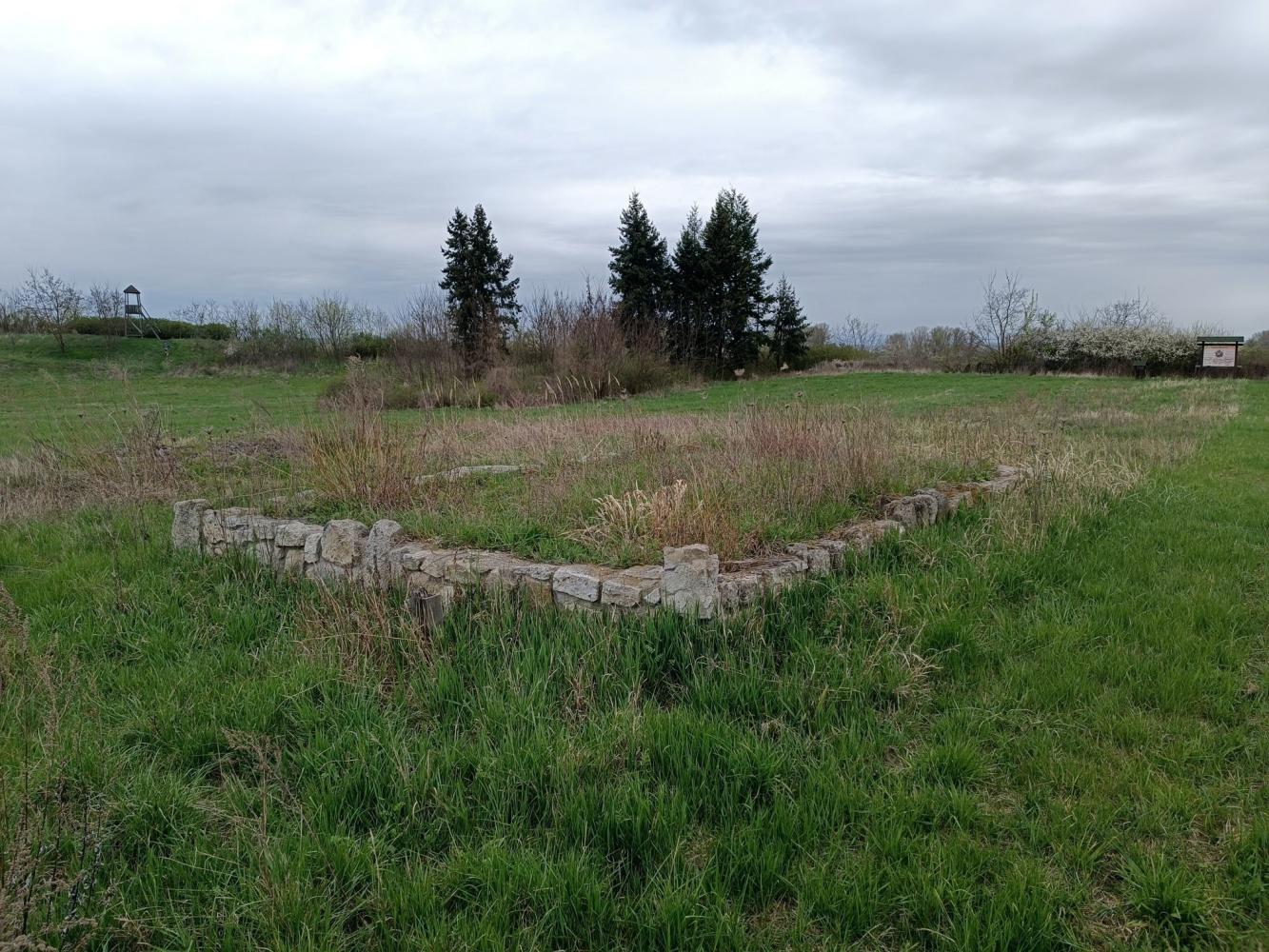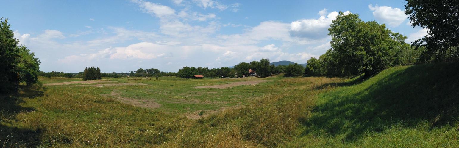 Az 1974–1975. évi sáncátvágás csak a sánc belső felére korlátozódhatott, de az eredmények a szerkezetre és az időrendre vonatkozóan kellő támpontot jelentettek. A sánc végig egységesen ún. rekeszes (kazettás) szerkezetet mutatott, vagyis a sánc irányával párhuzamos, egymástól 2–3,5 m-re, és arra merőleges, egymástól 0,6–1,2 m-re fekvő gerendákat raktak váltakozva egymásra. A gerendák barnára korhadva, vagy szürke por alakban bontakoztak ki, összeillesztésüket nem sikerült megfigyelni. A gerendák közeit döngölt földdel töltötték ki. A sánc rekonstruálható gerendaszerkezete 23,3 m széles és 6,6 m magas lehetett, amelyet 14 szintre lehetett elkülöníteni, de egy-egy szintben 3–4, néha több gerenda volt egymás alatt. A felső négy szintben a gerendák valamivel ritkábban jelentkeztek, ami valószínűleg későbbi építési periódusra mutat. A ma ismert kézi munkanormák és optimális időjárás figyelembevételével, számítások szerint 100 embernek kb. 2 év és 3 hónap kellett a sánc felépítéséhez. A sánc legtetején a mai felszín alatt 4,30 m szélességben, 0,5 m vastag fehér habarcsos faltörmelék mutatkozott, egy teljesen kiszedett kő várfal nyomaként, amely a várat körbevette, de a fal eredeti szélességét nem sikerült megállapítani. A sánc alatt őskori, késő bronzkori és császárkori cserepek tanúskodtak a hely korábbi lakottságáról. A sánc faszerkezete közötti földből 10–11. századi cserepek kerültek elő, a legfelső rétegekből pedig 12– 13. századiak jelezték a későbbi sáncfelújítást. Utóbbi helyen ritka mezőgazdasági vaseszközök is voltak elásva (2 sarló, 1 ásópapucs és 1 szőlőmetsző kés).