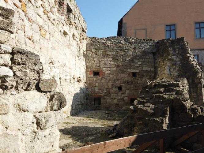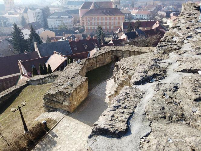 A tatárok elvonulás után IV. Béla 1248-ban adott engedélyt Lambert püspöknek a vár felépítésére, 1261 körül már elkészült, de IV. László király kedvelt kunjai 1271-ben feldúlták. A királyi várból valószínüleg 1275-ben lett püspöki vár, amely mindaddig romokban hevert, amíg Telegdhy Csanád püspök annak helyreállítását Meg nem kezdte, illetve II. Miklós püspök be nem fejezte. Ez utóbbi 1300-1350 között építette fel az Ókapu feletti róla elnevezett Miklós tornyot.