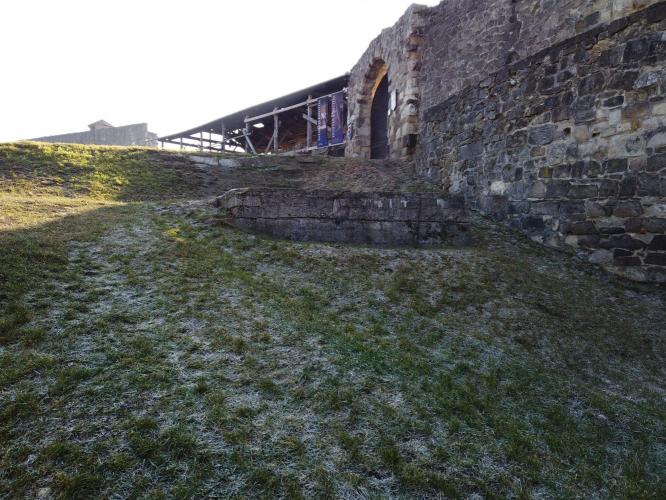 Az ismeretlen körülmények között elpusztult és sokáig romokban heverő várat ma már meg nem állapítható időben újjáépítették. Az új s nagyobb vár udvara téglalap alaprajzú, és mintegy 300x150 m nagyságú lehetett. A tulajdonképpeni erősséget az Almagyar tetejére építették Sánc néven, fűrész alakban 6 m magas és 2 m vastag kőfalakkal, a nyugati oldalon egyetlen kapuval.