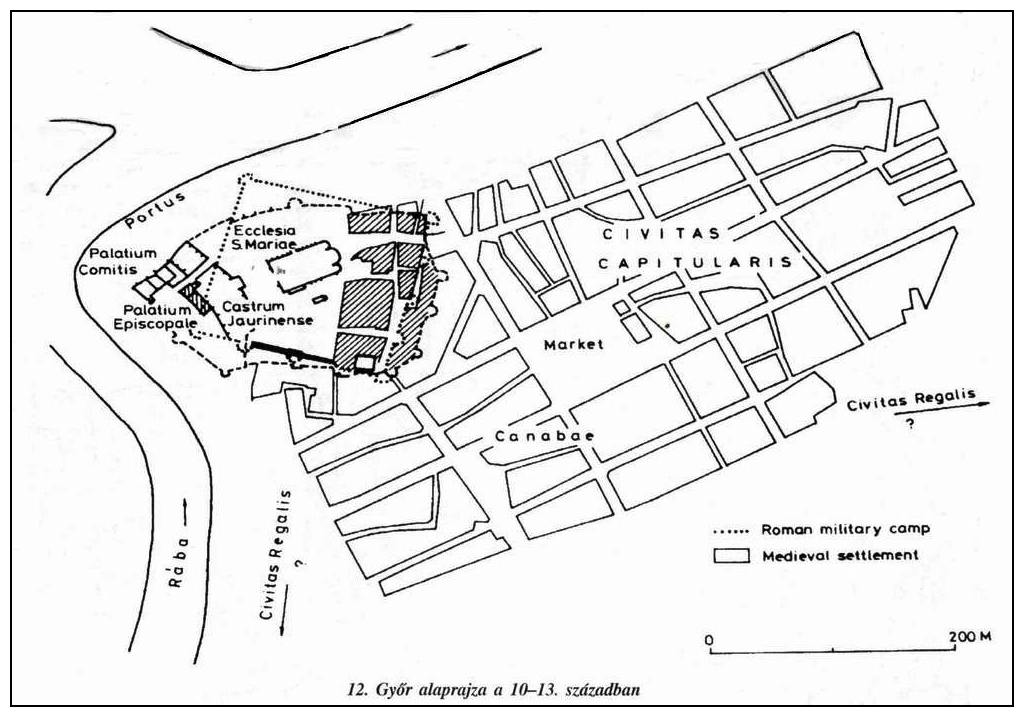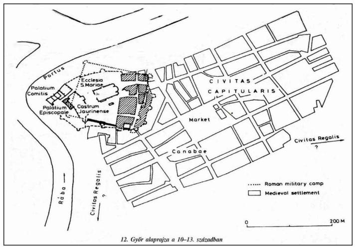 A német hadjáratok hatására Győr várát megerősítették, ugyanúgy, mint Sopronban, a régi római falak mögé/felé kazettás szerkezetű föld/fa várat építettek. Győr a 12. század elején jelentős esemény helyszíne volt: "Szt. Fábián és Sebestyén vértanuk ünnepén Salamon és Géza herceg Magyarország színe előtt Győrött békét kötöttek."