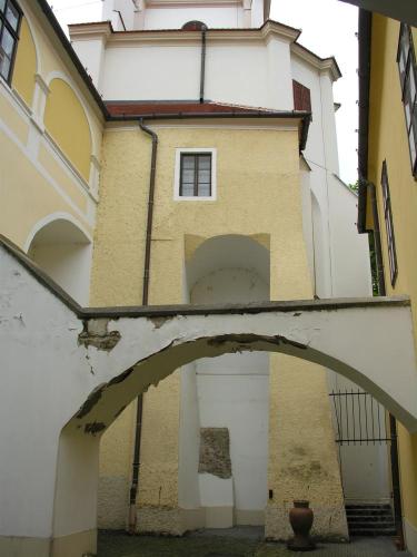 Mátyás király uralkodása alatta püspöki palotát késő gótikus stílusban kibővítették és renoválták. A kaputorony magasságát megemelték és átfestették, a kváderfestés felett elhelyezték Nagylucsei Orbán győri és Ernuszt Zsigmond pécsi püspök címerét. A kaputorony déli oldalához Nagylucsei Orbán egy gótikus kápolnát épített, amely 1487-re készült el. 1489. 10. 02-án kiadott oklevelében Mátyás király a Győr városát elpusztító tűzvész után 6 évi adómentességet biztosított azoknak a polgároknak, akiknek leégett a háza. Mátyás király halála után az akkor még győri püspök Bakócz Tamás II. Ulászló pártjára állt.