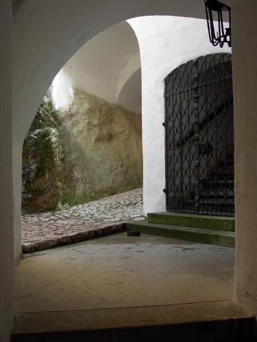 Az alsó várkapun belépve először egy kisebb falszorosba érkezünk, ahonnét a boltíves kapu alatti emelkedőn visz fel az utunk egy újabb kapuhoz. Lépcsőkön és folyosókon haladunk felfelé a palotaszárnyak szövevényén, egészen a hegycsúcs legmagasabb pontját jelentő négyszögletes öregtoronyig. A külső várfalon ágyúk sorakoznak. A középkori erősség érdekes részlete az Andrássy grófok sírboltja, és a mellette lévő várkápolna, amit a DK-i, az egykori Dobogó bástyából alakítottak ki. Itt helyezték el Andrássy István báró feleségének, Serédy Zsófia úrnőnek épségben megmaradt, mumifikálódott holttestét egy üvegkoporsóban. Krasznahorka vára a falai között felhalmozott történelmi tárgyakkal a régmúlt idők épségben maradt hiteles tanúja.