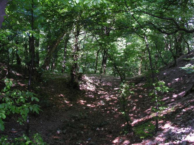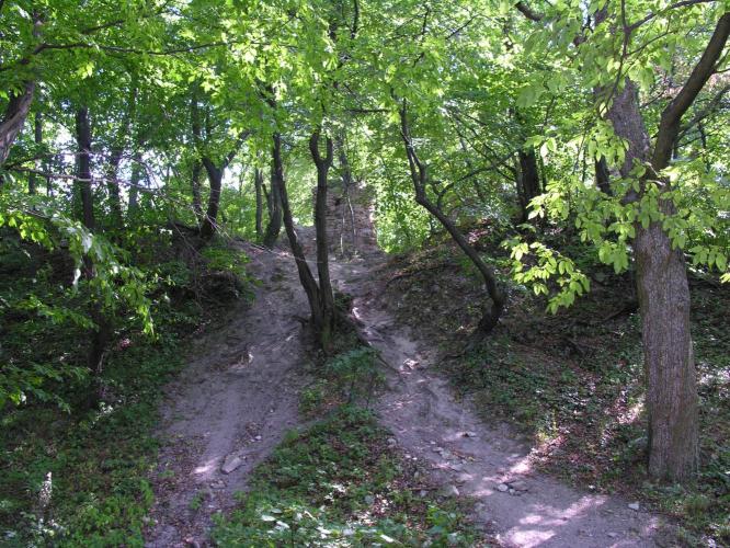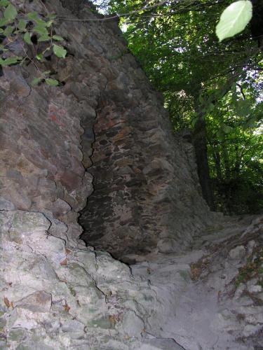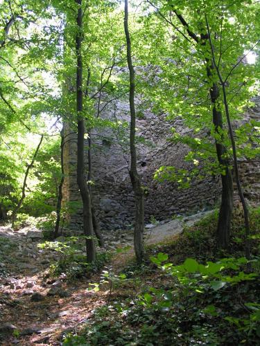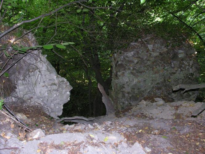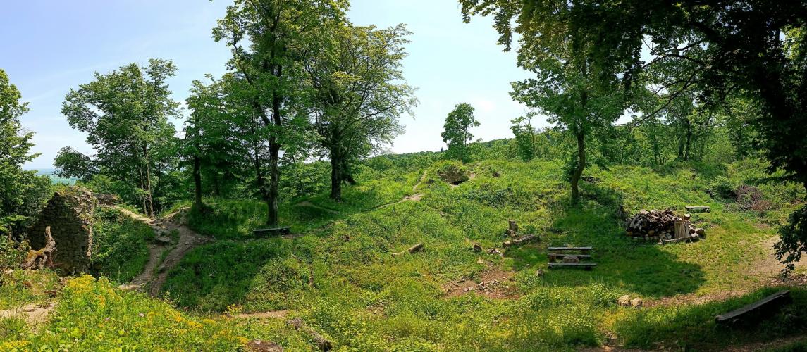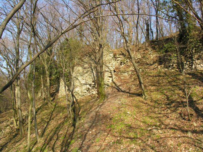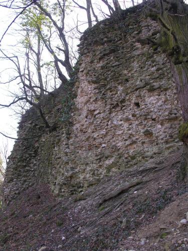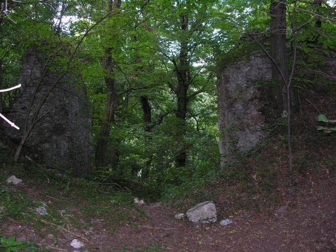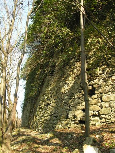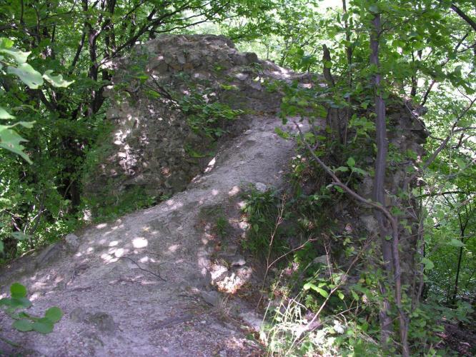 valamint az árkok között sánc is épült. Ez volt a vár leginkább támadható oldala, míg a vártól északra meredeken lejtő hegyoldal mentén külső védművek nem épültek.