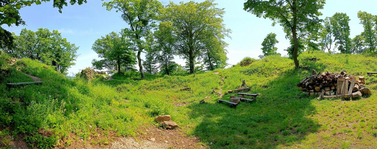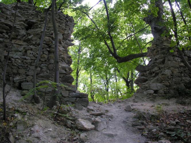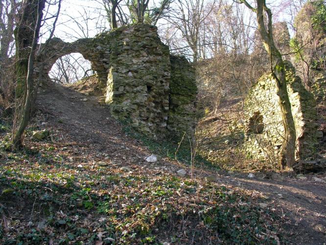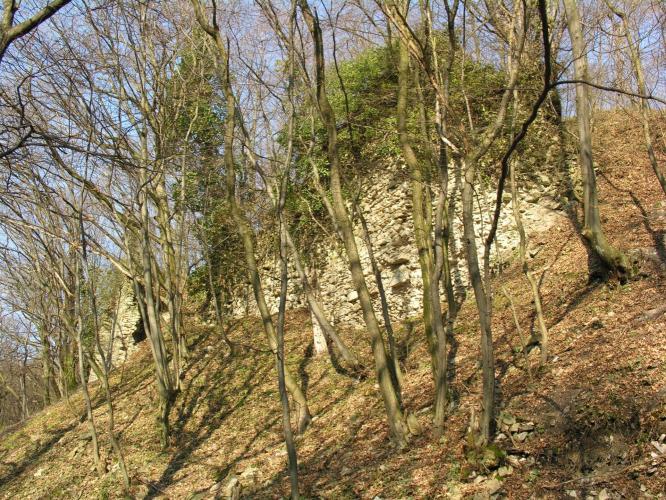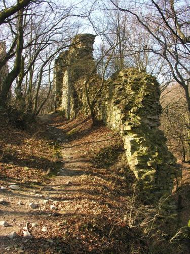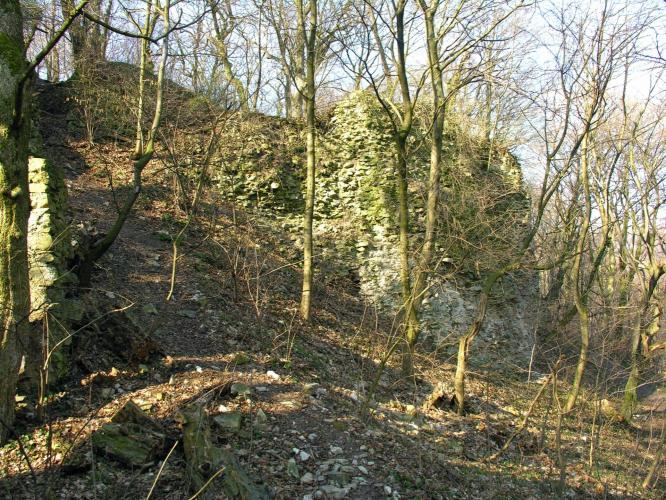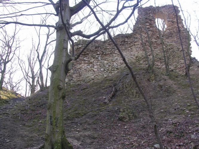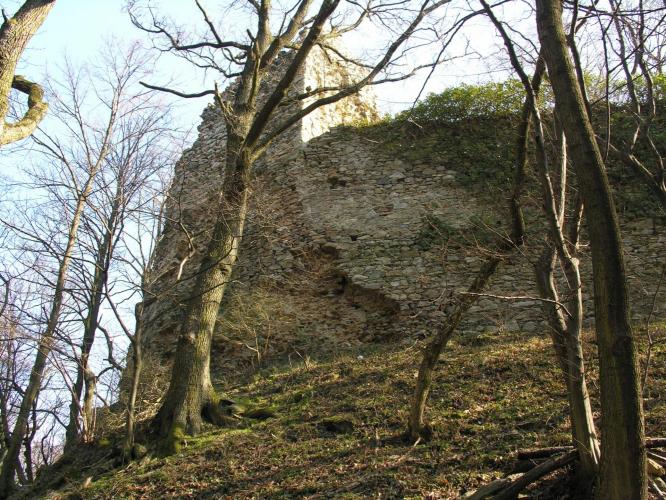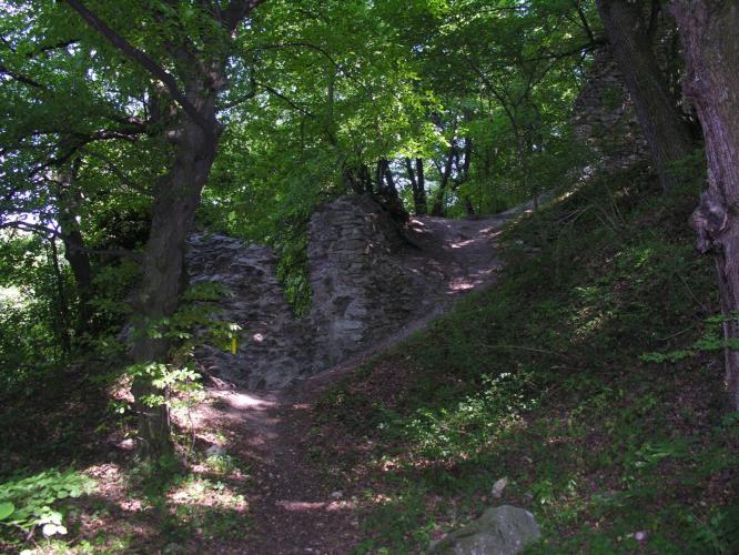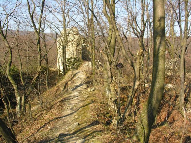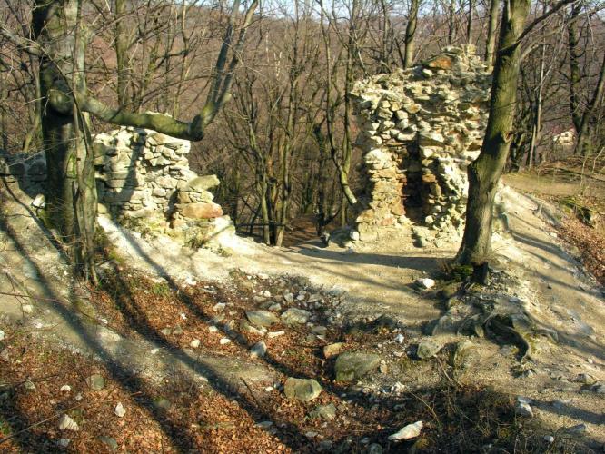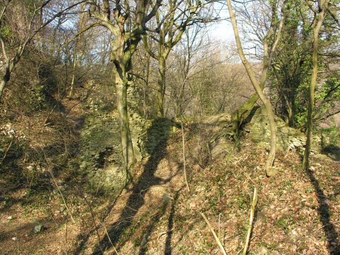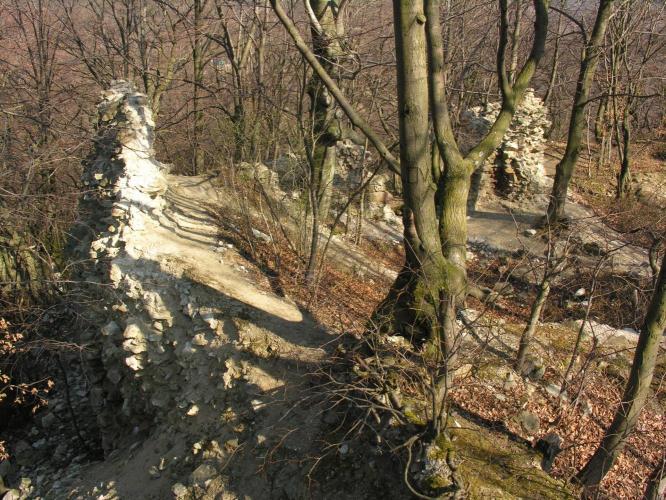 Megemlítendő, hogy a völgy túlsó, északi oldalán emelkedik, a nagyméretű sáncvár a Hradisko, amelynek belső sánc faszerkezete a 9. sz.-i szláv erődítésekre jellemző és a Nagy-Morva Birodalom idejére tehető. A középkori emlékek, melyek a 13. - 14. századból származnak azt mutatják, hogy a várat az Árpádok és az Anjouk idejében újra felhasználták.