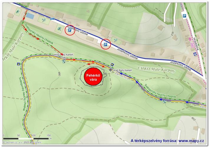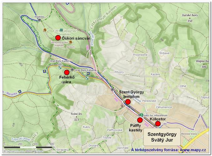 Szlovákia nyugati részén, Pozsony városától 12 km-re északkeletre fekszik Szentgyörgy ( Svätý Jur) városa. A városközponttól 1,5 km-re északnyugatra, a Kis Kárpátok egyik 290 méteres magaslatán állnak Fehérkő várának romjai.