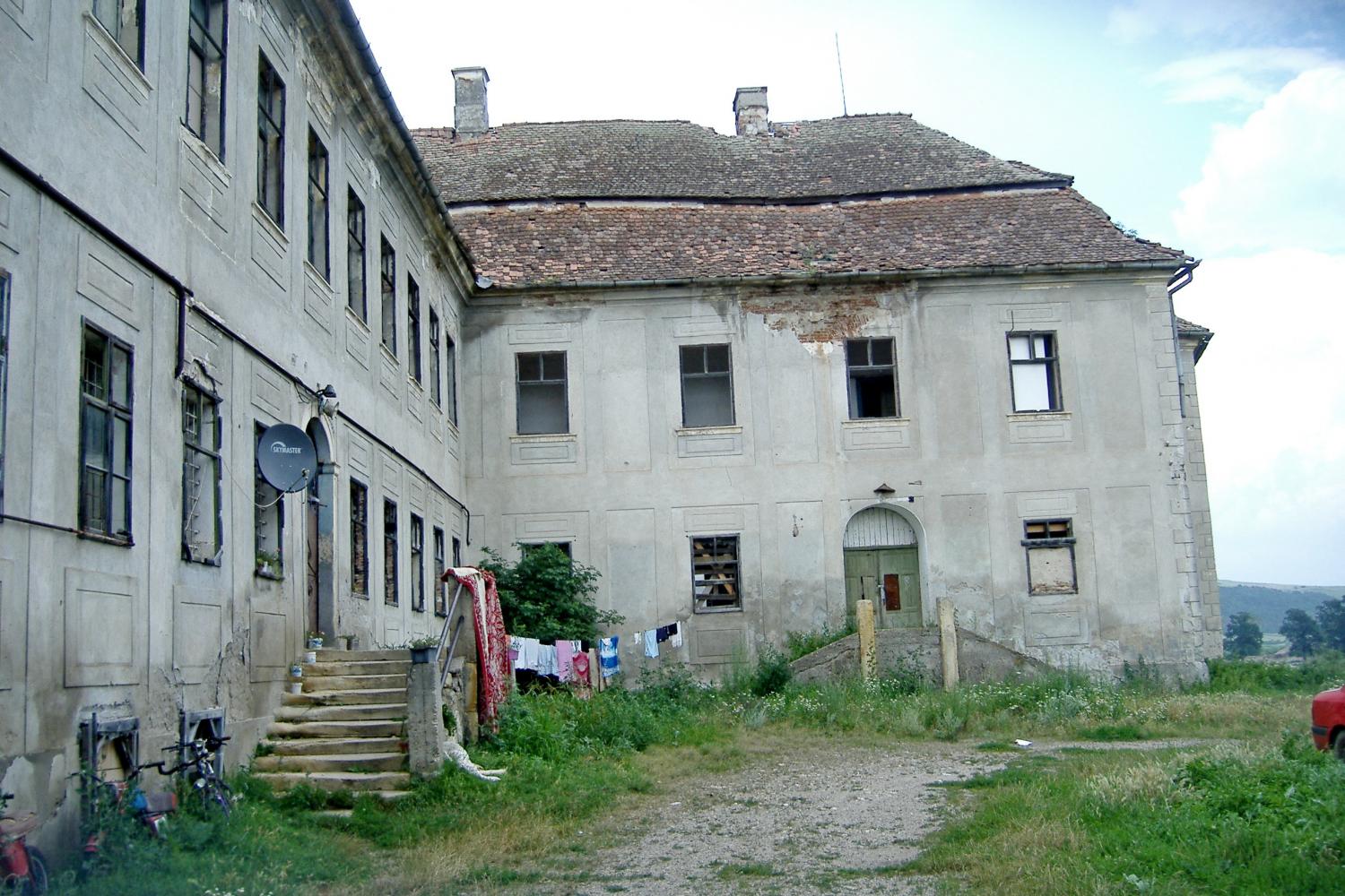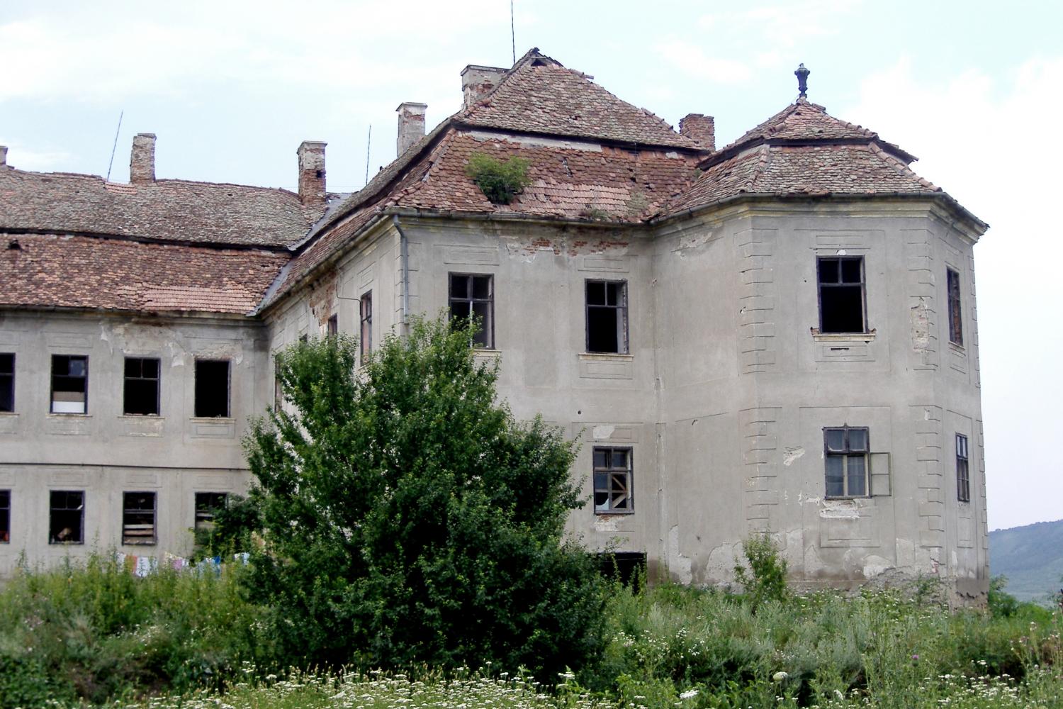 A 17. században átalakított, jelenlegi formájában barokkos, „L” alakú, egyemeletes manzárdtetős várkastély délkeleti és délnyugati sarkán egy-egy ötszög alaprajzú toronnyal, a templomtól északra, az Aranyos folyó partján, egy alacsony dombon áll. Ma egy részében gazdasági központ működik, nagyobb része azonban lakatlan, romos.