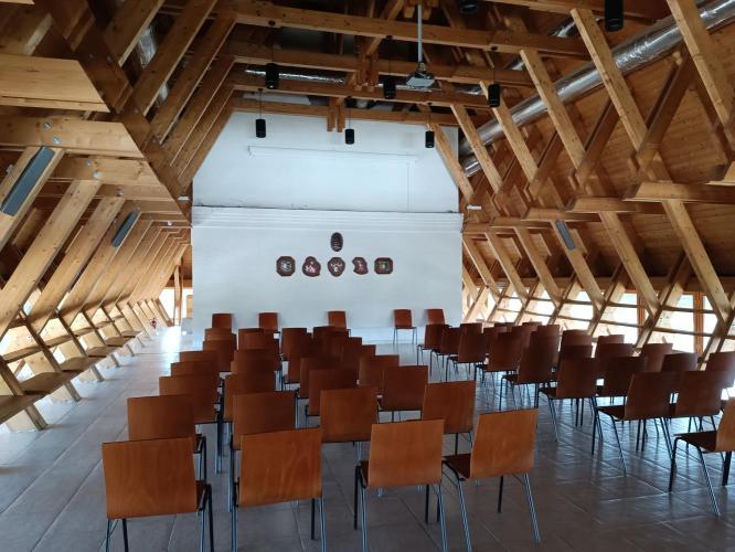 A gyönyörűen rekonstruált kastély négy termében az intézmény állandó kiállítása, a Báthori Panoptikum várja az idelátogatókat. Az emeletről modern csigalépcső vezet a tetőtérben kialakított 100 fő befogadására alkalmas konferenciaterembe, ahol jól látható az épület különleges gerendaszerkezete. A hatalmas pince egyik részében látogatható a kőtár, melyben azokat a reneszánsz kőmaradványokat helyezték el, amik a régészeti feltárás során kerültek elő. Az alagsor másik része középkori étteremnek ad helyet.