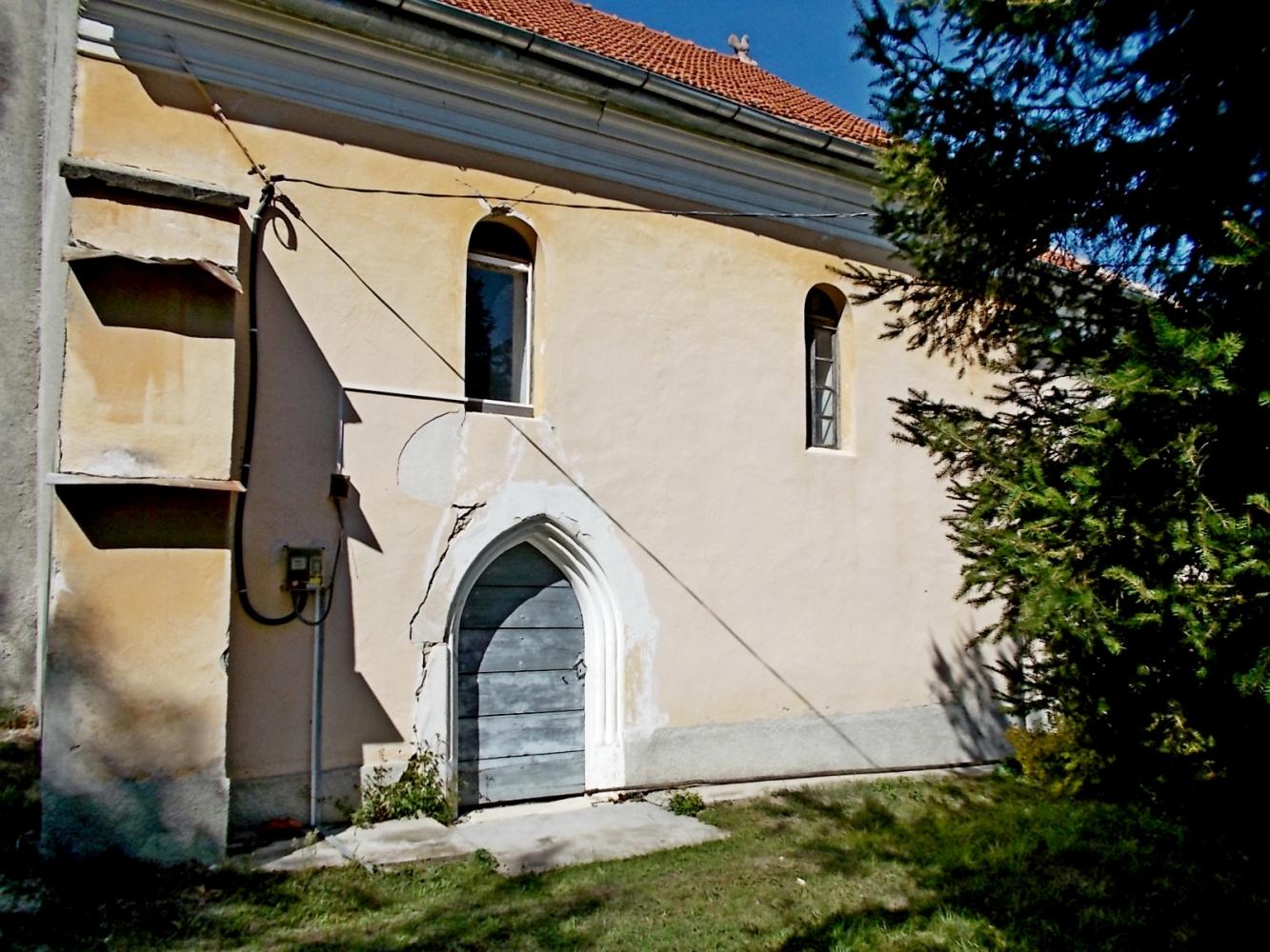 A templom négyzet alaprajzú, egyenes záródású szentélyből, téglalap  alakú hajóból és a hajó nyugati oldalához csatlakozó toronyból áll. A  szentély és a hajó keleti falsarkait átlós támpillérek támogatják.  Szentélyének keresztboltozata már a 18. században sem volt meg, annak  nyomait ma csak a sarkokban található egyszerű gúla alakú konzolok őrzik.  A szentélyt kelet felől egy félköríves résablak, dél felől egy későbbi  félköríves ablak világítja meg. A déli hajófalon egy késıgótikus, gazdagon  díszített pálcatagos csúcsíves kő ajtókeret található (a pálcák a csúcsívben  egymáson átmetsződnek). Hasonlóan későgótikus a hajó nyugati, földszinti  és karzati bejárata. A hajóval együtt falazott zömök nyugati torony felső emeletén kőkeretes, osztóoszlopok nélküli ikerablakok találhatók.  A templom építését – tornyával együtt – a 13. század második felére  tehetjük. Alaprajzi elrendezése, szentélyformája a környéken széles körben  elterjedt, közeli párhuzamai Kide, Botháza, Ormány, valamint Alsó- és  Felsőtök templomai.