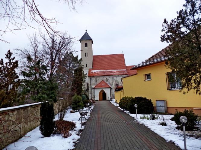 A templomot a 13. század első felében építették, egyhajós szerkezetként, előreugró toronnyal és ismeretlen alakú szentéllyel. A 14. század elején a épületet gótikus stílusban átépítették, az eredeti szentélyt sokszögű presbitérium váltotta fel.