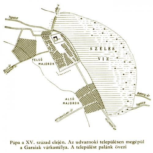 Városunk eredetileg nem volt kerített város. (Ez elnevezésébol – oppidum, mezováros – is következett.) 1543-ra, amikor Martonfalvay Imre deák Pápára érkezett, azonban valami földhányás, talán árok és gyenge palánk vette körül a várost. Ez valószínűleg a mohácsot követő időkben, talán az 1529-es török támadást követően hozták létre. Mindenesetre ahogy Martonfalvay írta emlékiratában: „Az várat pusztán találám, várassát épületlen.” Ekkor kezdenek nagyobb erődítési munkálatokat végezni, vesszőfonatos földsánccal, kör alakú, talán kővel erősített bástyákkal veszik körül. A Martonfalvay által fallal körülvett terület nem terjed ki a teljes városra, a „majorok” kívülrekednek a védelmet nyújtó falakon. Nádasdy Tamás feljegyzései alapján, 1555-ben – mintegy 2986,2 méter volt a fallal védett terület. Ez nagyjából a mai belvárosnak felel meg.