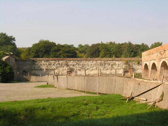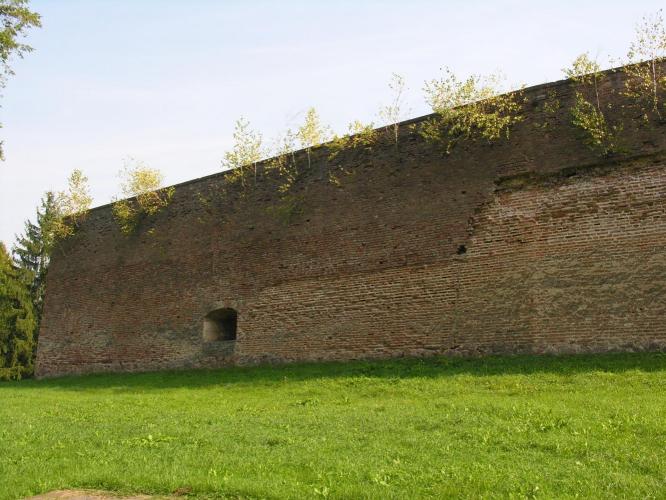 A vártól délre fekvő Óváros északi oldalán boronapalánk, a többi oldalán 7 m magas és 4-5 m széles, sövénnyel fonott, sárral tapasztott faszerkezetű földtöltés épült, melyet kettős, 12 illetve 10 m körüli szélességű vizesárok kerített, minden égtáj felé egy-egy kapuval.