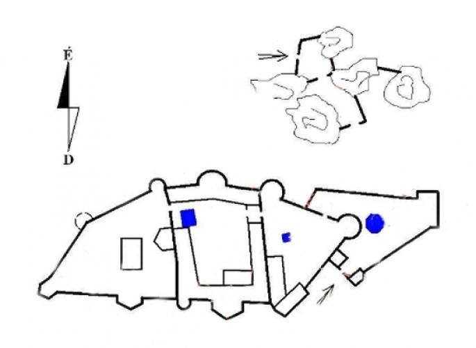 Az udvar közepét mély kétszintes pince foglalja el, oldalát kövekkel rakták ki. A források Sibylla-pince néven említik, élelmiszerek és bor tárolására szolgált. Felette a járószintből kiemelkedő fából emelt épület padlásán gabonát raktároztak. A déli vároldal védelmét a Veres-bástya látta el. Az ó-olasz típusú védőmű maradványai igen rossz állapotúak, azt az időjárás folyamatosan pusztítja.