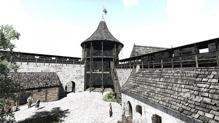 A belsővárba egykor mintegy 20 méter hosszúságú, részben boltozott, részben síkfödémes kapualj vezetett. Fölötte két emelet emelkedett, szintenként két teremmel. A tetőtérben dobolóhely volt kialakítva, az idő múlását pedig egy óra mutatta a várbelieknek. A nagyjából négyzetes várudvart mindenfelől épületek határolták, melyeket az évszázadok során fokozatosan létesítettek és bővítettek. Pontos építéstörténetüket további régészeti kutatások fogják tisztázni.