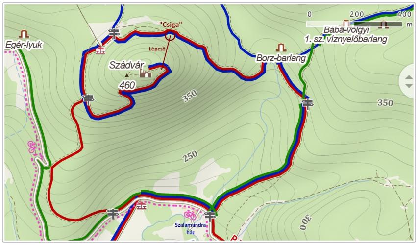A vár körbejárása után javasolt a "Piros L" jelzés keleti ágán visszaereszkedni a Szalamandra-turistaházhoz.
