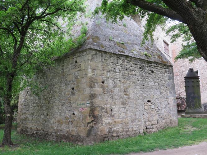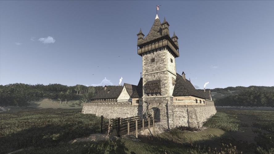 A várudvar északi részén bontakozott ki a negyedik épület, amely két helyiségből áll. Ehhez kapcsolódva az északi sarkon, a vár mai falain kívül előkerültek egy XIV. századi őrtorony 7x7 méteres alapfalai. A torony kb. 30 méter magas lehetett, alkalmas volt az utak figyelésére és a palota bejáratát is védte.