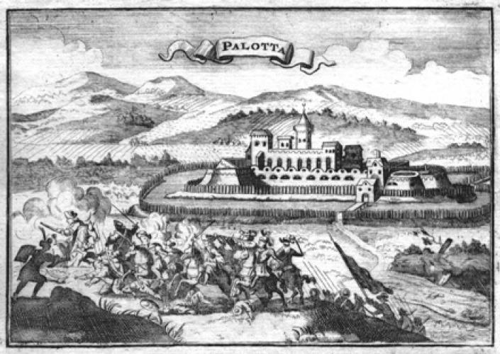 1707. július 1-jén a labancok esztergomi, budai és fehérvári seregéből összevont mintegy ezer ember indult ágyúkkal felszerelve Palota ostromlására, de Domokos Ferenc kuruc brigadéros vezetésével a csekély számú őrség és a várba menekült lakosság sikeresen ellenállt az ostromnak. A házakat azonban bosszúból megint felgyújtották.79 A palotai vár felszereltségét mutatja, hogy másokat is tudtak hadianyaggal segíteni. 1708-ban a simontornyai várba négy mázsa puskaport, kétszáz gránátot és egy láda ólomgolyót szállítottak.80 1709-ben a kurucok egyik súlyos vereségének a színtere lett Palota. Heister teljesen szétszórta Palotánál az előnyomulását megállítani akaró Esterházy Antal kuruc tábornok seregeit,81 s ezt követően, amint a kuruc versben olvashatjuk, "Palotán nem hajdú tart őrséget." A kuruc háború befejeztével a vár egy darabig még királyi erődítmény, de már elvesztette hadi jelentőségét. Megkezdődött a feudális társadalmi rend keretei között Palota polgári fejlődése.