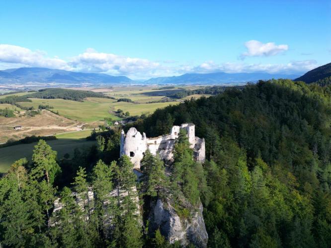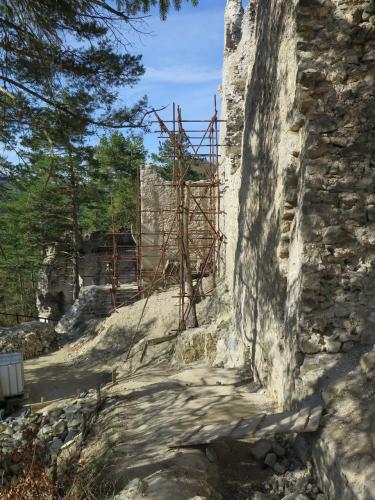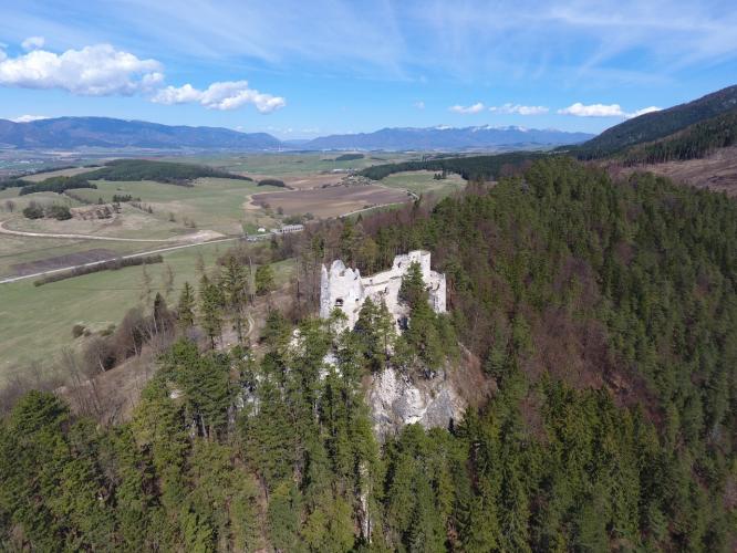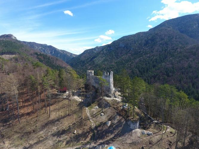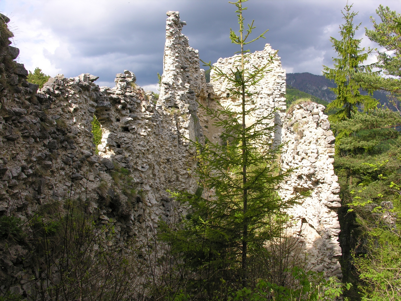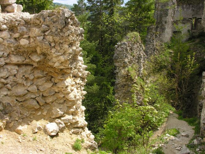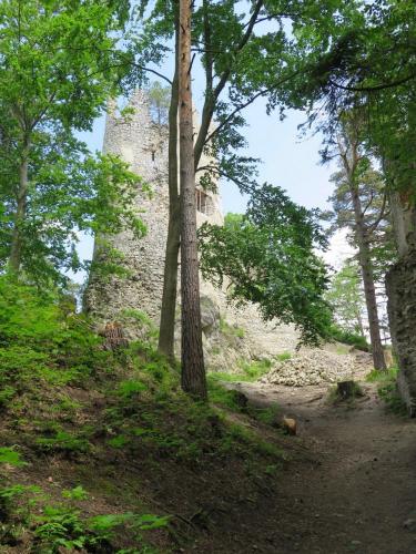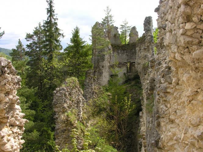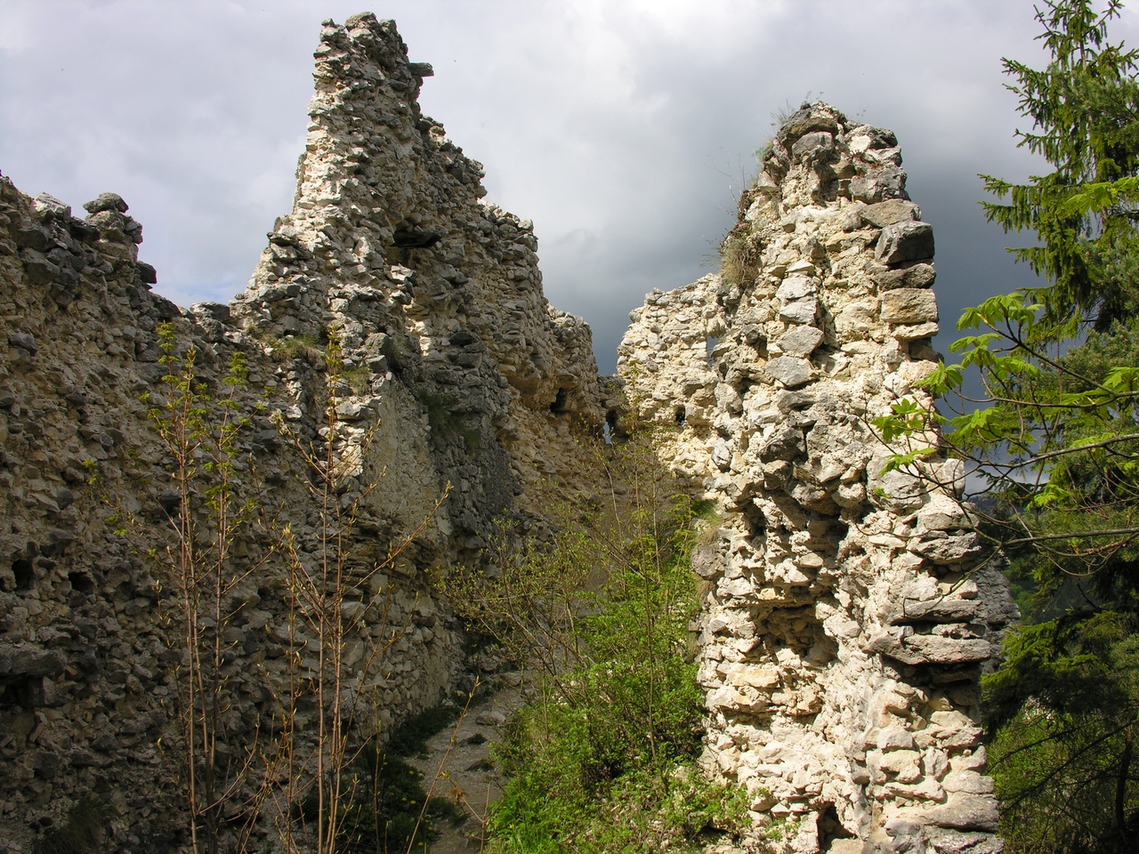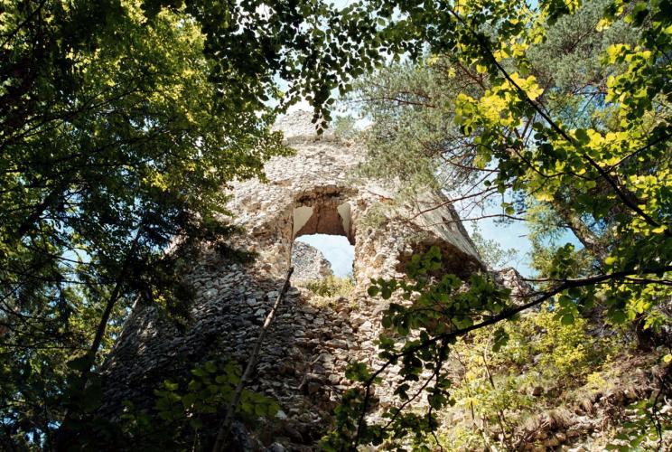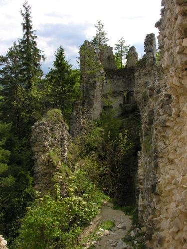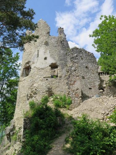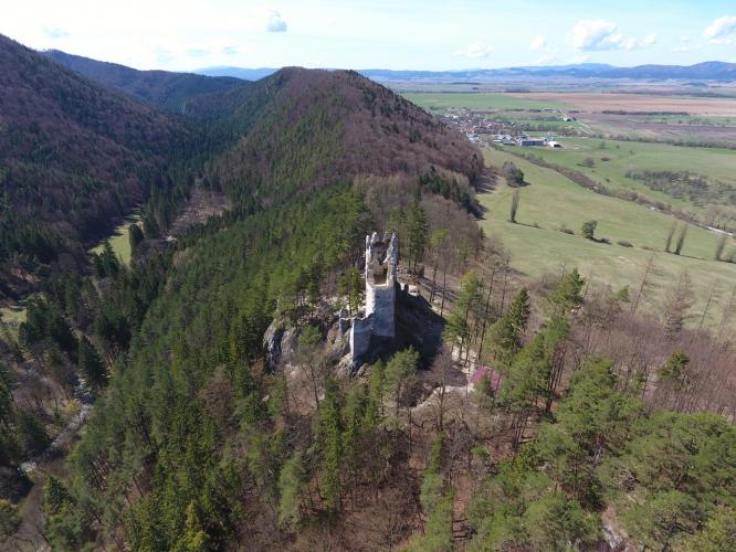 Innen a sárga jelzést követve, először a Blatnica patak völgyében haladunk kb. két kilométert, majd rövid, de meredeken emelkedő gyalogösvényen kapaszkodhatunk fel a középkori várromhoz.