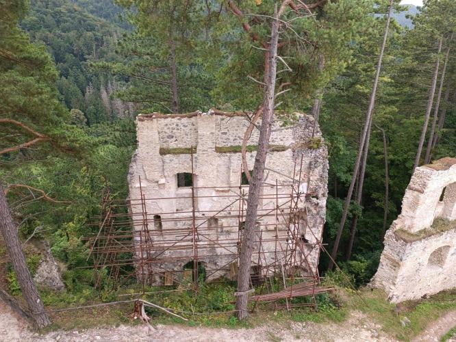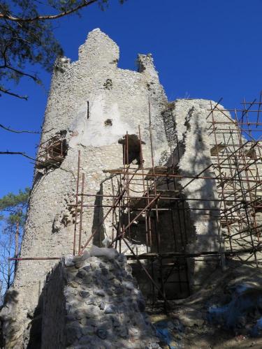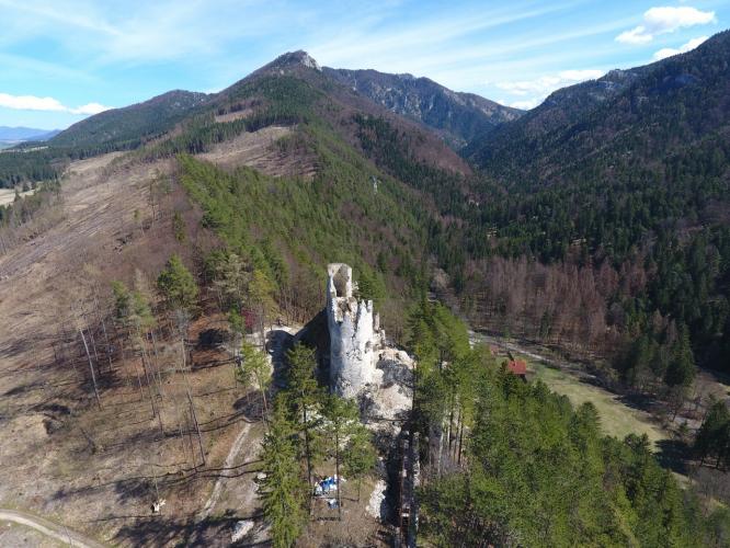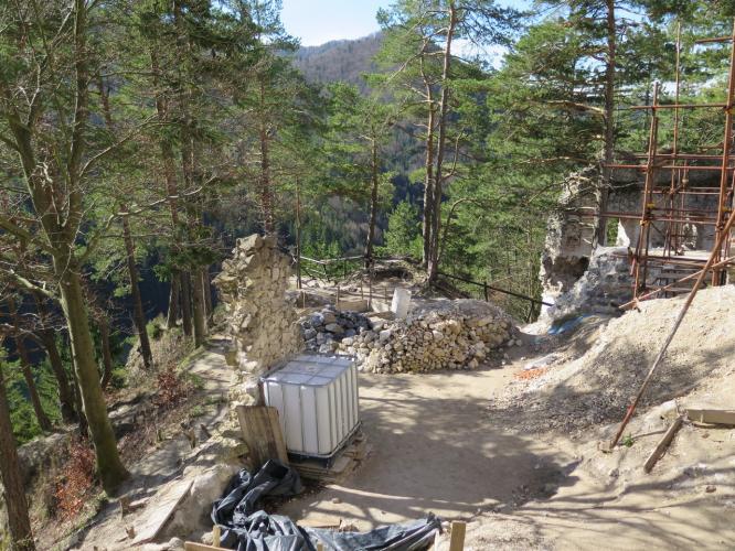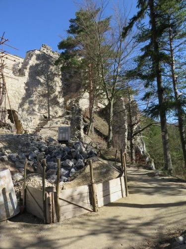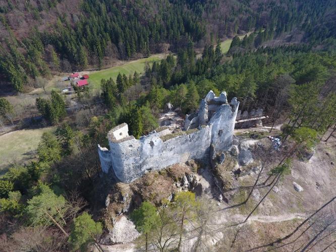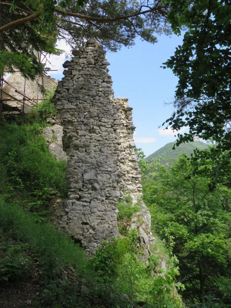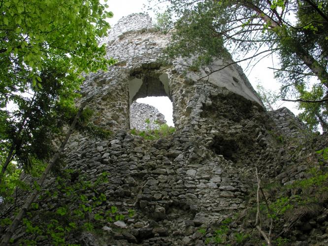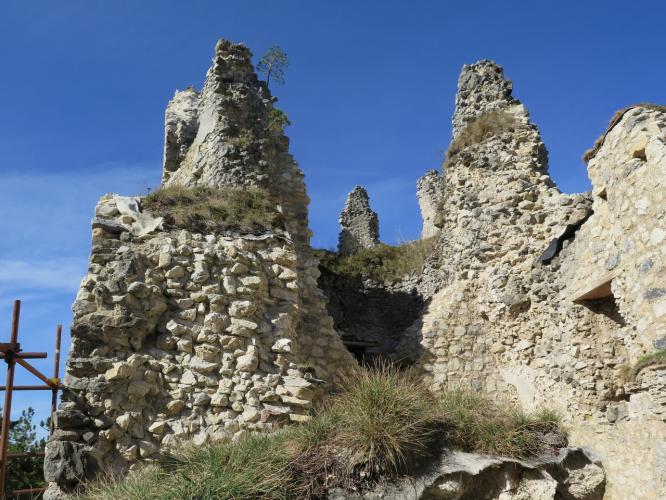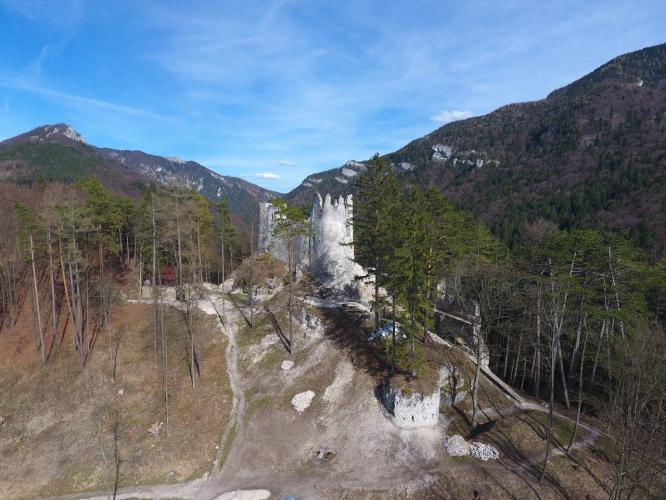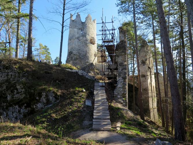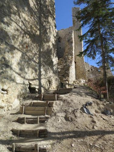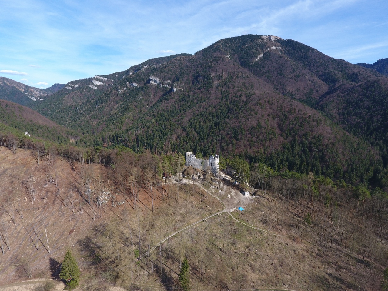 Innen a sárga jelzést követve, először a Blatnica patak völgyében haladunk kb. két kilométert, majd rövid, de meredeken emelkedő gyalogösvényen kapaszkodhatunk fel a középkori várromhoz.