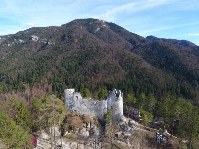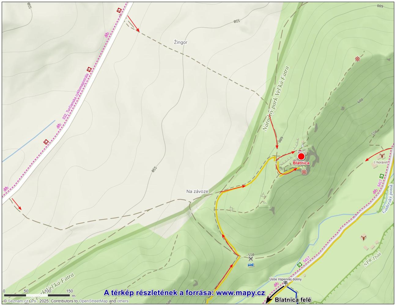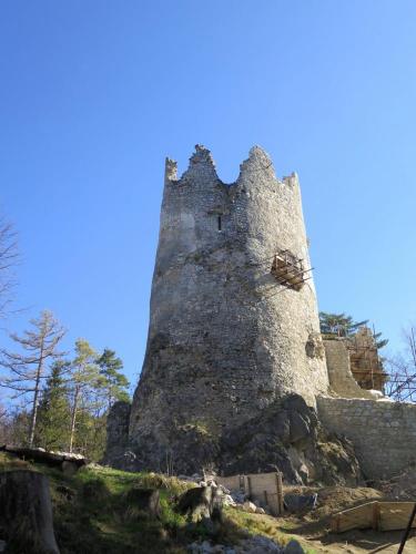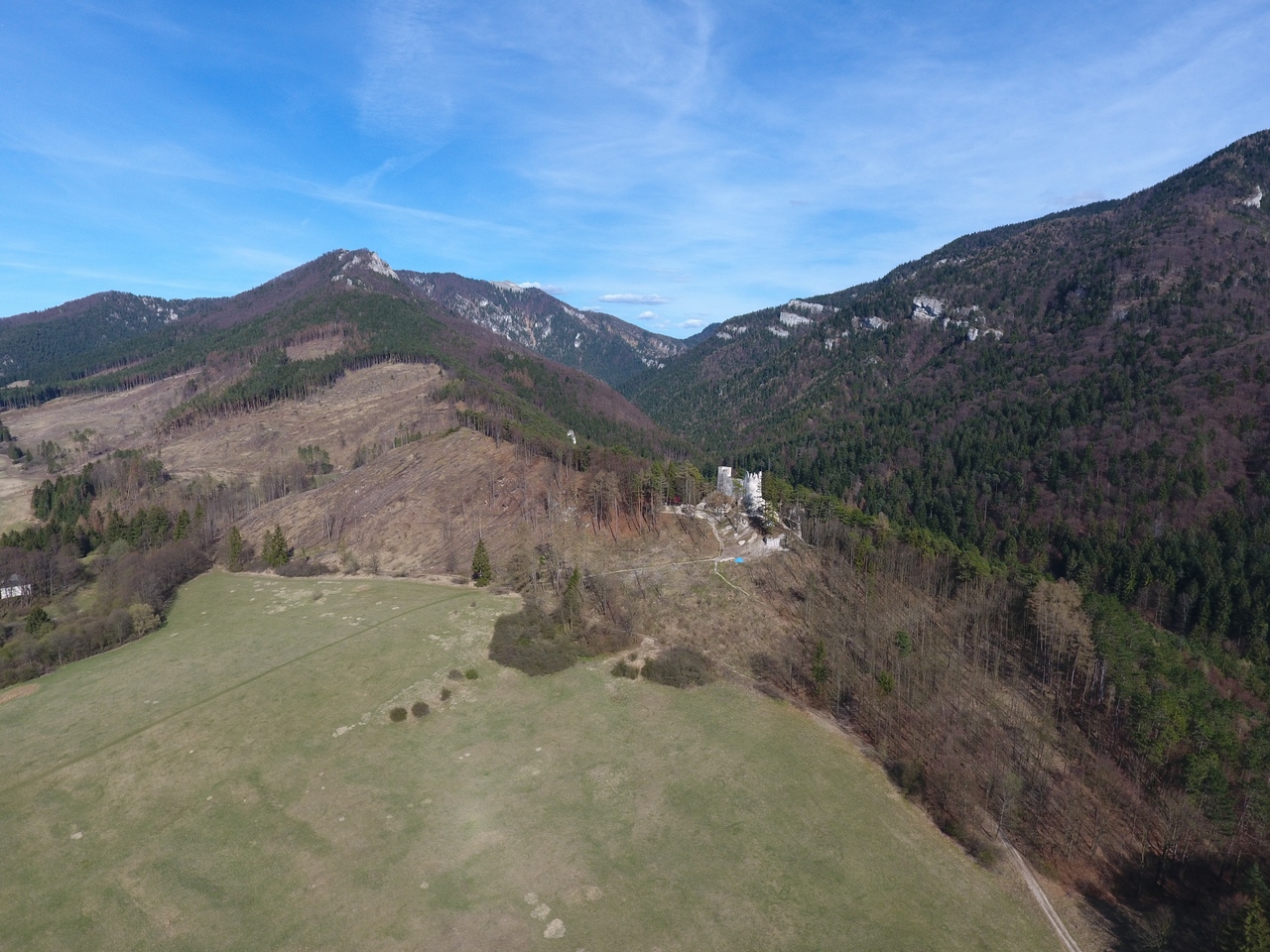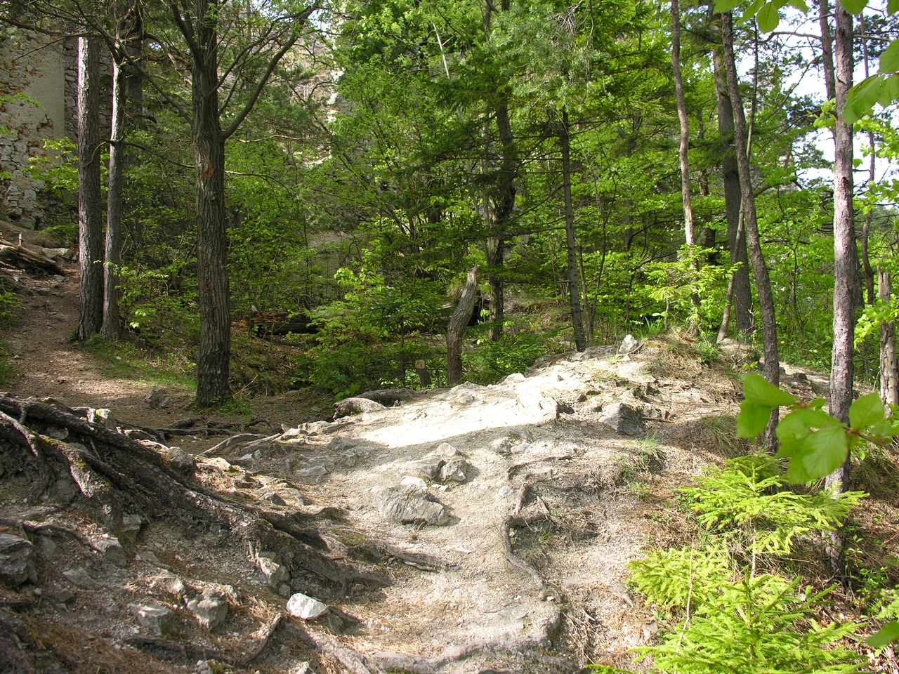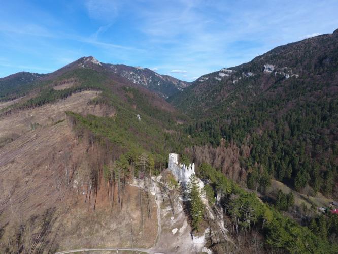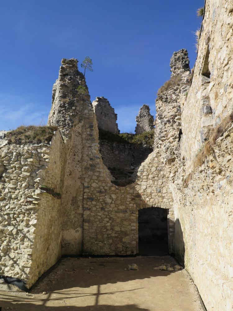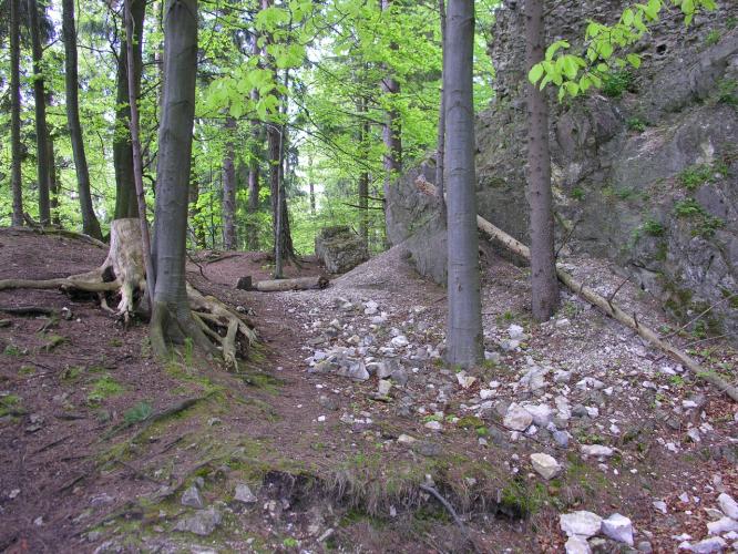 Innen a sárga jelzést követve, először a Blatnica patak völgyében haladunk kb. két kilométert, majd rövid, de meredeken emelkedő gyalogösvényen kapaszkodhatunk fel a középkori várromhoz.