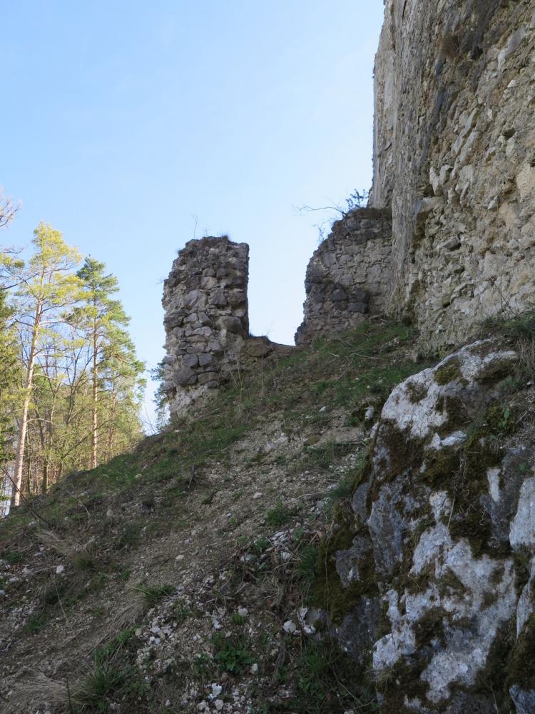 Az ÉK-i oldalon egy talán a XVI. században emelt védőművet figyelhetünk meg. A Ny-i sziklagerincen 6 – 8 méterre fölénk magasodik a felsővár tömbje. A kutatók feltételezése alapján a keskeny sziklagerinc legmagasabb pontján emelkedő É-i, nagy kerek torony és a hozzá csatlakozó keskeny, mintegy 14 méter hosszú, falaival ma is magasan álló palota származhat a XIV. század elejéről.