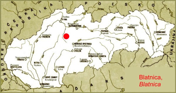 Információk: Szlovákia középső területén, a Nagy és Kis Fátra hegységek által közrefogott Turóci-medencét déli irányból a 65. számú főúton közelíthetjük meg. A főútról keleti irányban letérve Mosócz {Mošovce} községből vezet egy mellékút Blatnica {Blatnica} településére.
