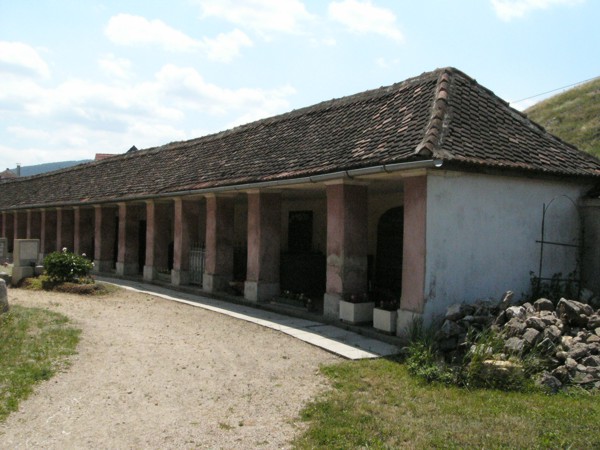 A templomot övező, középkori eredetű, lőréses várfal É-i, Ny-i és DNy-i szakasza még eredeti állapotában fennáll. A K-i falat ill. az É-i fal egy szakaszát lebontották, helyette új kőfalat építettek. A Gespreng-berg felé nyíló kaput elfalazták, a talajszintet feltöltötték. A kerítőfalon belül a brassói szászok temetője látható.