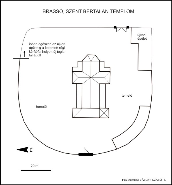 Brassó (Kronstadt, Braşov) É-i részén található az erődített fallal övezett Szt. Bertalan (Bartholomeu) templom. Már az Árpád-korban település volt itt, amit a templom környékén előkerült 13. századi leletek tanúsítanak. A templom a 13. század második felében épült, Ny-i toronypáros, háromhajós, kereszthajóval ellátott bazilika, amelynek főszentélye a nyolcszög öt oldalával záródik. Párkányzata és ablakai román stílusúak, a szentélyablakok azonban csúcsívesek.